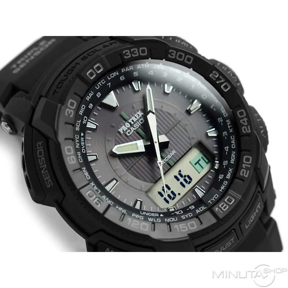 Часы оборудованы специальным цифровым датчиком, который при активации фунции "компас", определяет направление Севера.