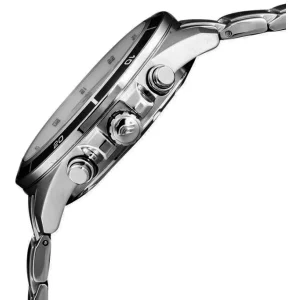 Корпус часов выполнен из нержавеющей стали, которая не подвержена коррозии. При этом часы надолго сохранят свой первоначальный вид благодаря прочности и надежности металла.